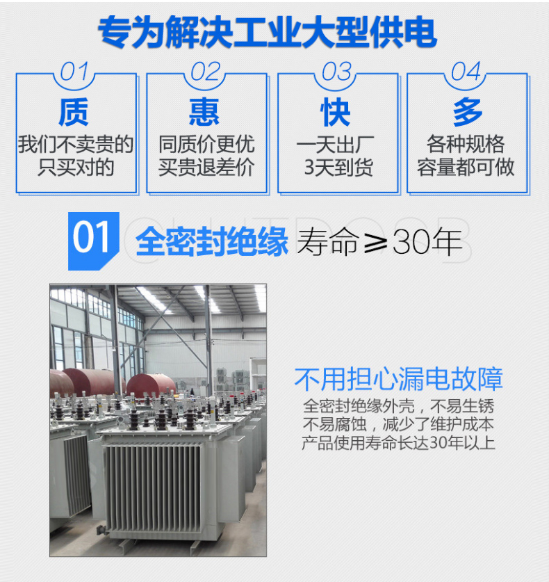 S13系列10kv级油浸式变压器使用用于电力系统,交通,邮电部门,同时在机电五金行业,纺织家具制作业,电焊机,数控机床,工业自动化成套设备中普遍应用,起着不可代替的作用。